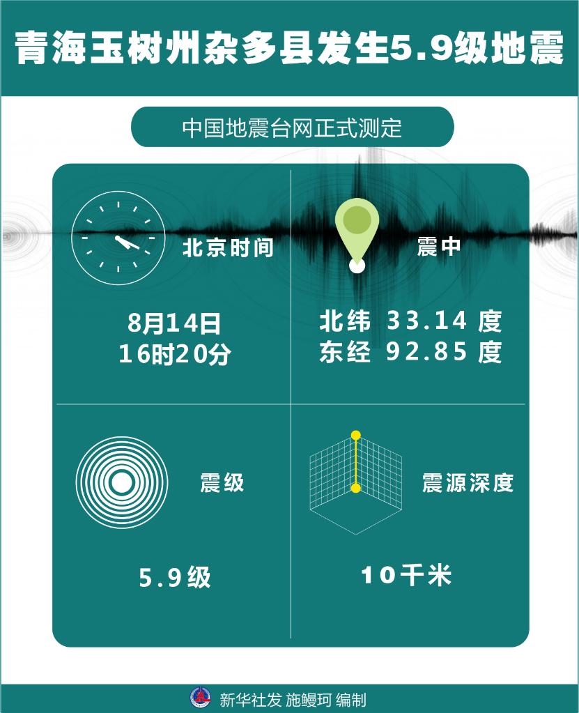 新華社西寧8月14日電(記者陳杰、王艷)記者從青海省地震局獲悉,8月14日16時(shí)20分,青海省玉樹藏族自治州雜多縣發(fā)生5.9級地震,震源深度10千米,震中位于北緯33.14度、東經(jīng)92.85度。目前,暫無人員傷亡消息。