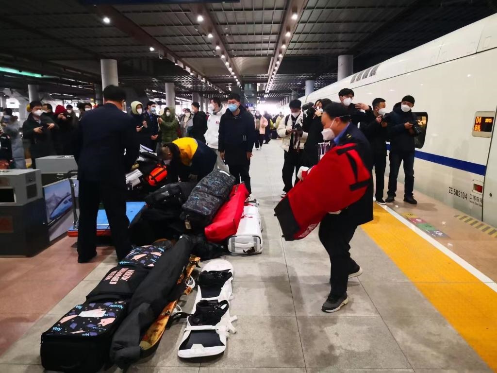 清河站在候車室設置了專門區(qū)域辦理雪具托運相關業(yè)務,以壓縮旅客的時間成本。“旅客只需聽從工作人員引導進行信息核對即可,整個過程不超過3分鐘,隨后就會有專人將雪具運送至車上。為了讓旅客到站后可以第一時間取到雪具,我們將最大限度實現(xiàn)旅客雪具同車到達?!鼻搴诱菊鹃L王小勇說。