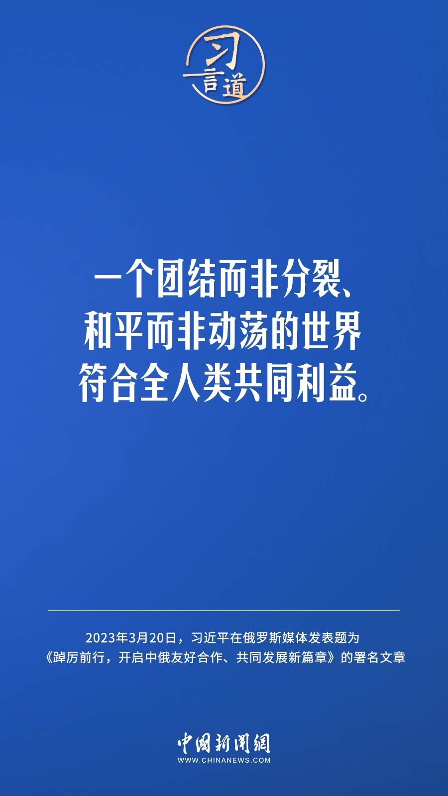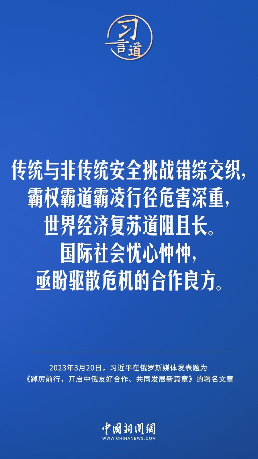 3月20日,在赴莫斯科對俄羅斯聯(lián)邦進(jìn)行國事訪問之際,國家主席習(xí)近平在《俄羅斯報(bào)》和俄新社網(wǎng)站發(fā)表題為《踔厲前行,開啟中俄友好合作、共同發(fā)展新篇章》的署名文章。習(xí)近平指出——