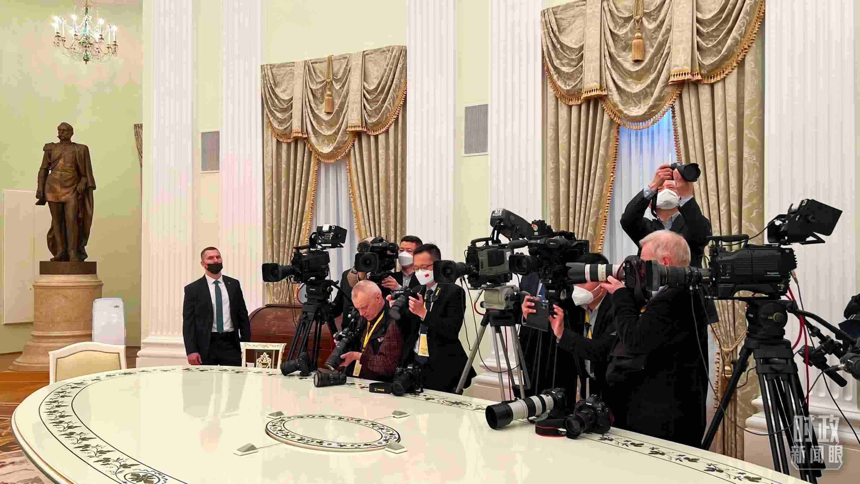 △3月20日下午,中外記者前往克里姆林宮拍攝中俄兩國(guó)元首會(huì)見。(總臺(tái)央視記者程鋮拍攝)
