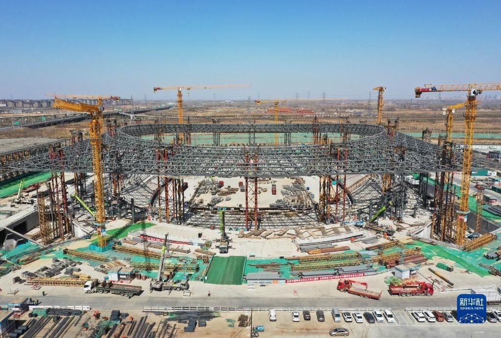 這是位于雄安新區(qū)啟動區(qū)的雄安體育中心項目現(xiàn)場(2023年3月15日攝,無人機照片)。新華社記者 朱旭東 攝