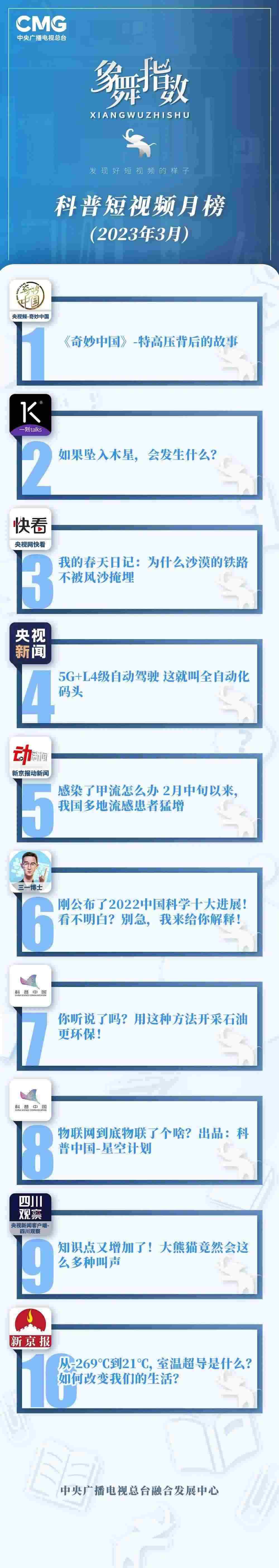 象舞指數(shù)丨科普短視頻月榜(2023年3月)