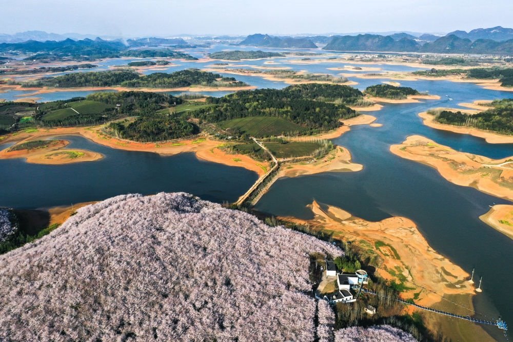 在貴安新區(qū)櫻花園,櫻花競相盛開,游人如織。該園占地面積2.4萬余畝,種植了近70萬株名貴櫻花,是目前世界上集中連片種植面積最大的櫻花基地。