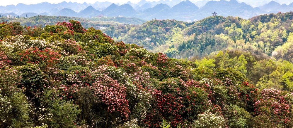 地處貴州畢節(jié)的百里杜鵑風(fēng)景名勝區(qū),每年花開時節(jié)都會吸引游客前來觀賞。此處綿延分布了125.8平方公里的原始杜鵑林帶,是國家5A級旅游景區(qū)。