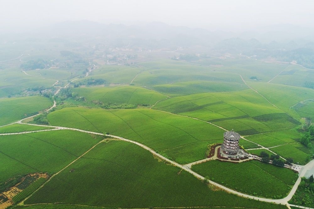 貴州省湄潭縣永興鎮(zhèn)萬畝茶海(無人機(jī)全景照片,2023年4月4日攝)。新華社記者 歐東衢 攝