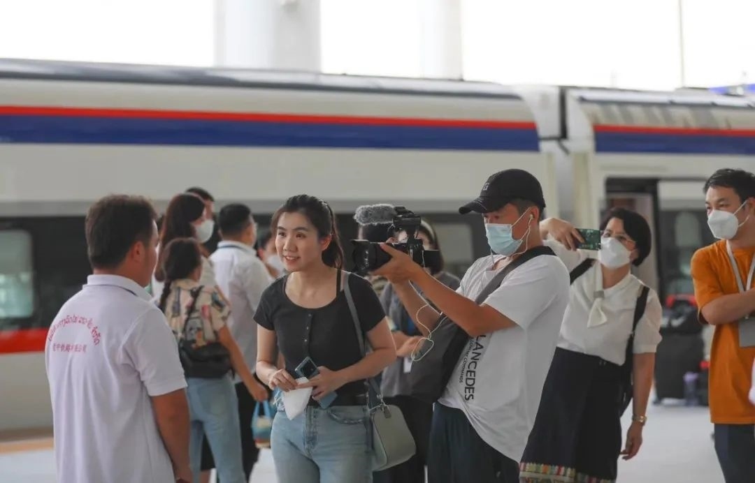 比如,專訪老撾國家主席通倫的節(jié)目中,主持人鄒韻在中老鐵路“瀾滄號”動車上采訪當?shù)芈每?,車窗外鐵路沿線風光萬千,總臺出品的歌曲《坐著火車去老撾》活潑輕盈,各國乘客用最真實的出行體驗,生動展現(xiàn)了跨越山河、聯(lián)結友誼的中老鐵路,是共建“一帶一路”取得的實打實的成就。