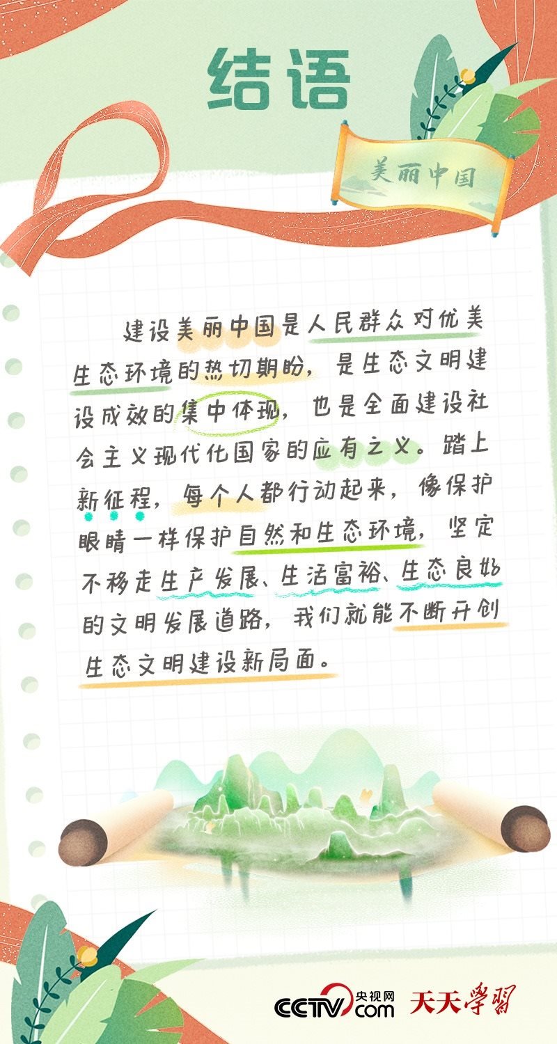 黨的十八大以來(lái),以習(xí)近平同志為核心的黨中央以前所未有的力度抓生態(tài)文明建設(shè),全黨全國(guó)推動(dòng)綠色發(fā)展的自覺(jué)性和主動(dòng)性顯著增強(qiáng),美麗中國(guó)建設(shè)邁出重大步伐。黨的二十大為美麗中國(guó)建設(shè)擘畫(huà)新藍(lán)圖:我們要推進(jìn)美麗中國(guó)建設(shè),堅(jiān)持山水林田湖草沙一體化保護(hù)和系統(tǒng)治理,統(tǒng)籌產(chǎn)業(yè)結(jié)構(gòu)調(diào)整、污染治理、生態(tài)保護(hù)、應(yīng)對(duì)氣候變化,協(xié)同推進(jìn)降碳、減污、擴(kuò)綠、增長(zhǎng),推進(jìn)生態(tài)優(yōu)先、節(jié)約集約、綠色低碳發(fā)展。一個(gè)天藍(lán)、地綠、水清的美麗中國(guó),漸行漸近。
