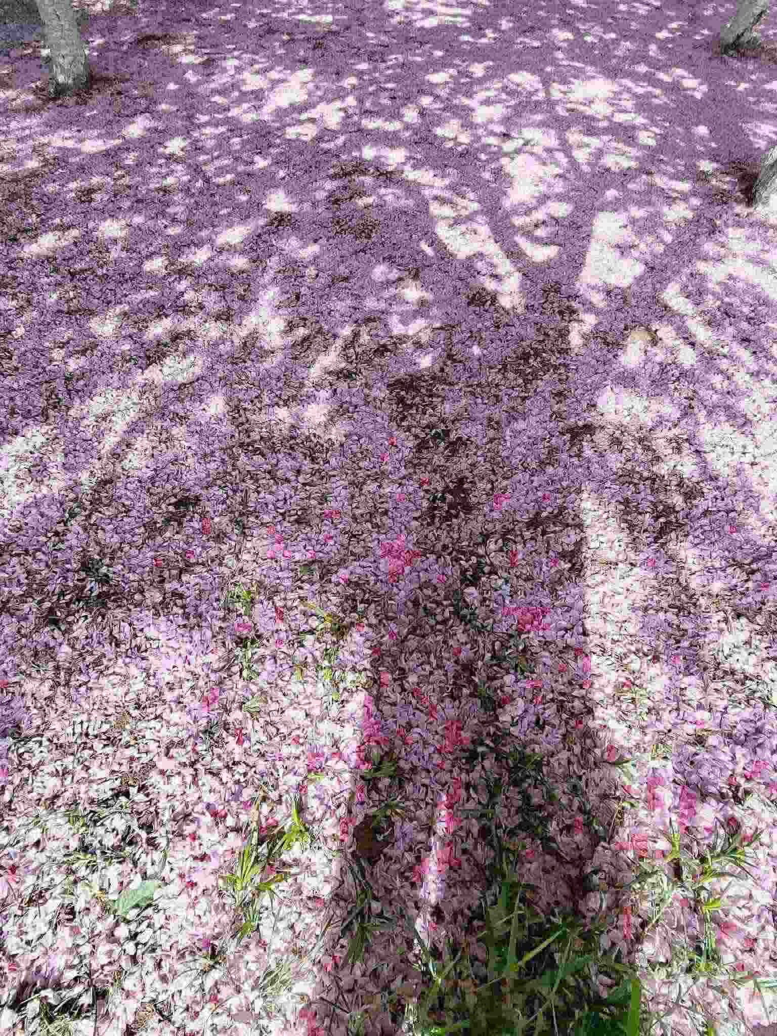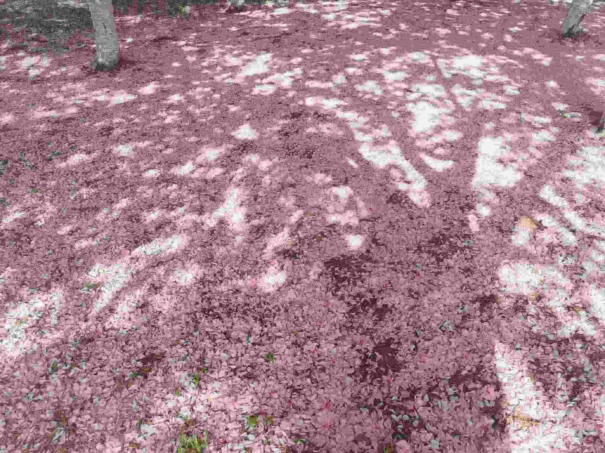2023年4月29日,青島中山公園,經(jīng)歷風(fēng)雨之后,櫻花樹下落了厚厚一層花瓣。視覺中國(guó)