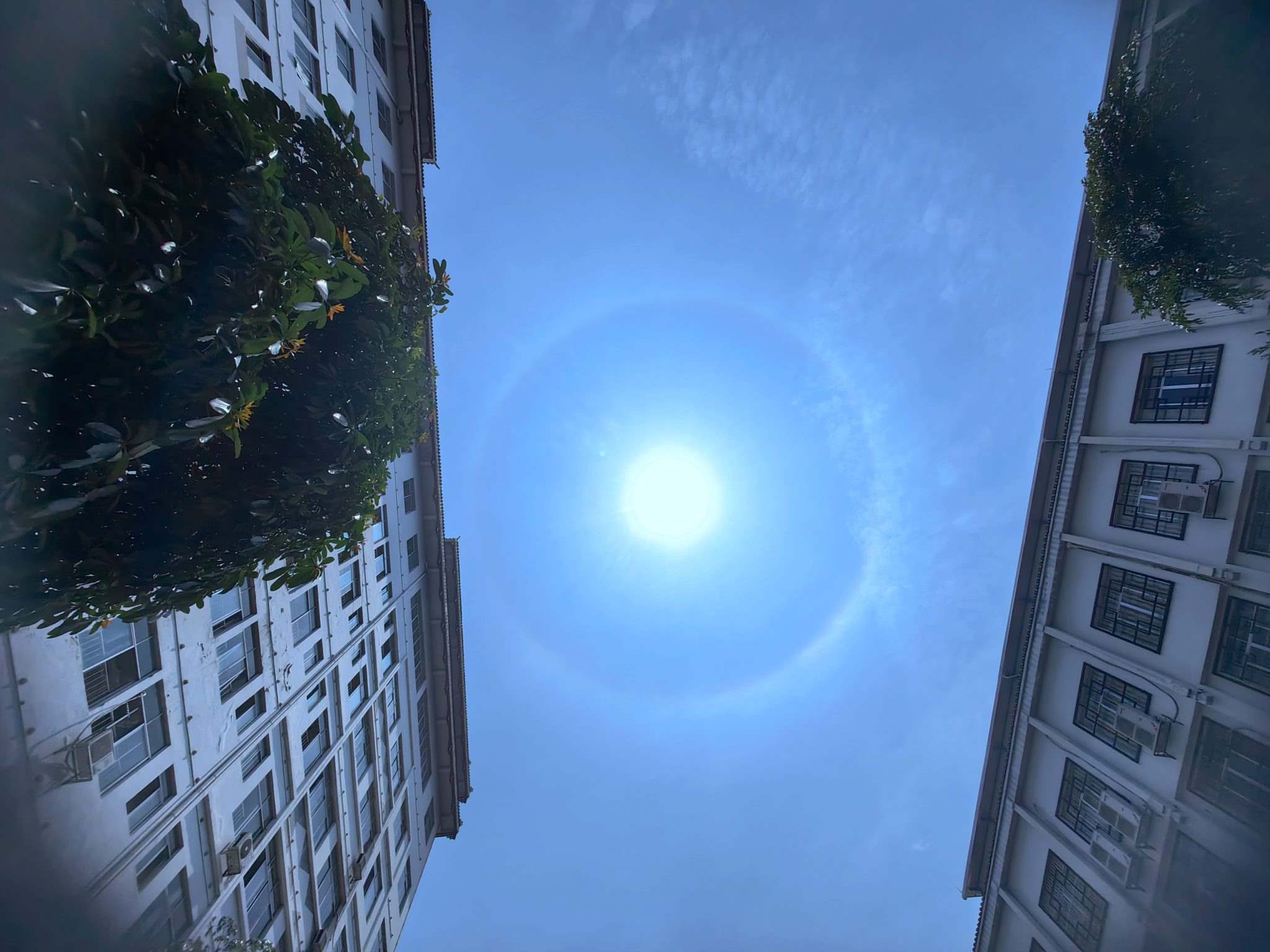 2023年4月30日,廣西來(lái)賓,忻城縣上空出現(xiàn)日暈景觀。視覺(jué)中國(guó)