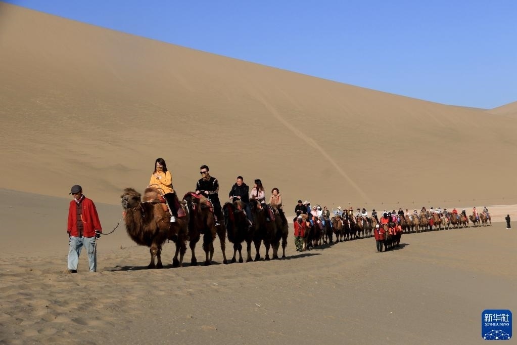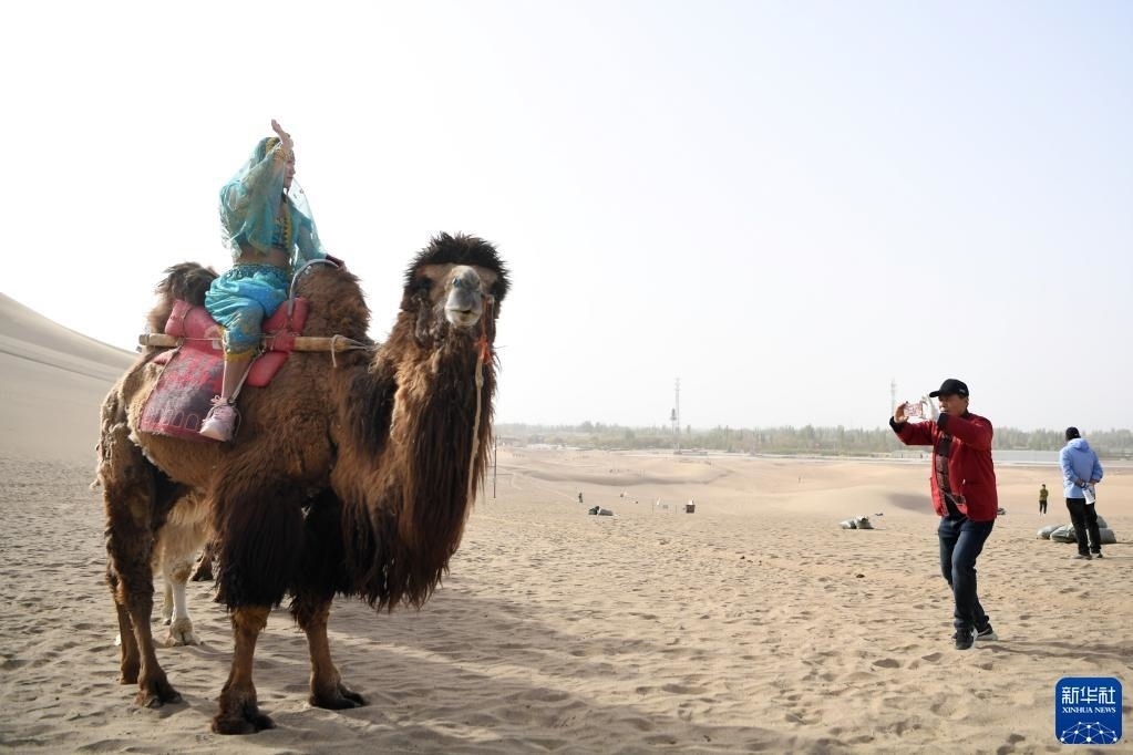 據(jù)介紹,截至4月29日,敦煌市內(nèi)鳴沙山月牙泉等六大景區(qū)今年已累計接待游客60萬人,同比增長448.72%,比2019年同期增長37.75%。   新華社記者 方欣 攝