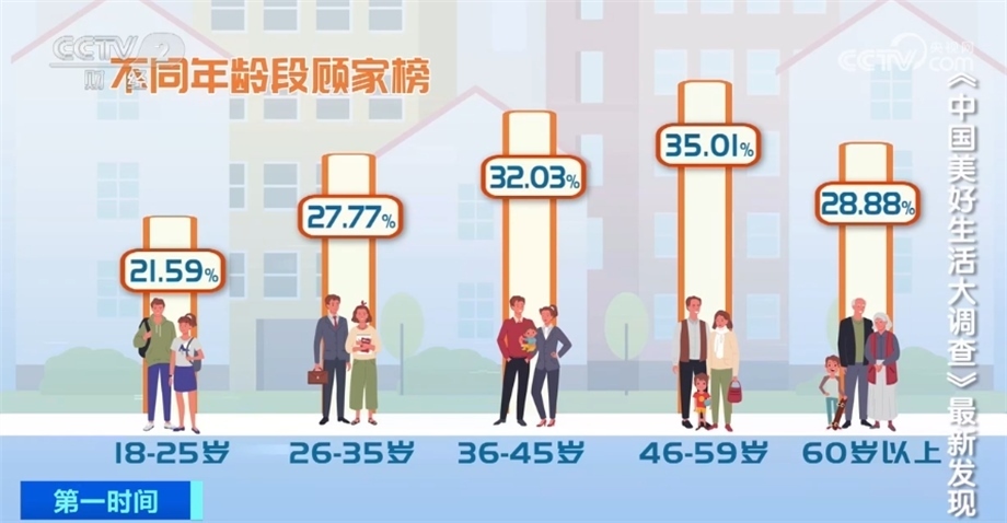 大調(diào)查發(fā)現(xiàn),46—59歲的中年人休閑時間陪伴家人的比例最高,其次是36—45歲人群。這兩個年齡段的人群,大都上有老下有小,家庭責(zé)任最大,一家人團(tuán)團(tuán)圓圓才是最美好的生活。