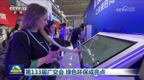 央視網(wǎng)消息(新聞聯(lián)播):第133屆廣交會三期正在進(jìn)行,綠色理念貫穿在布展、展品和技術(shù)等各個環(huán)節(jié)當(dāng)中。