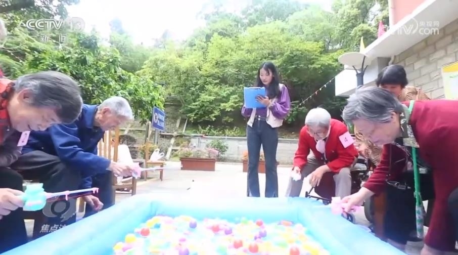 充氣魚池、塑料魚、網(wǎng)兜、小桶,在福利院的大院里,一場(chǎng)趣味釣魚大賽正在緊張進(jìn)行。這個(gè)披肩長(zhǎng)發(fā)、特別愛笑的裁判是老人們的“開心果”,也是福利院的“90后”社工朱小冉。和護(hù)理員楊愛紅不同,朱小冉的主要工作通俗來說,就是怎么讓老人們過得更樂呵。