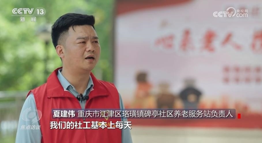 重慶市江津區(qū)珞璜鎮(zhèn)碑亭社區(qū)養(yǎng)老服務(wù)站負(fù)責(zé)人夏建偉:“一天下來,滿滿當(dāng)當(dāng)?shù)?,我們的社工基本上每天都超過了兩萬(wàn)三千步的樣子。雖然說很累,但是每一個(gè)社工都很愉快,都覺得在這個(gè)過程當(dāng)中找到了快樂,也找到了成就感?!?/p>