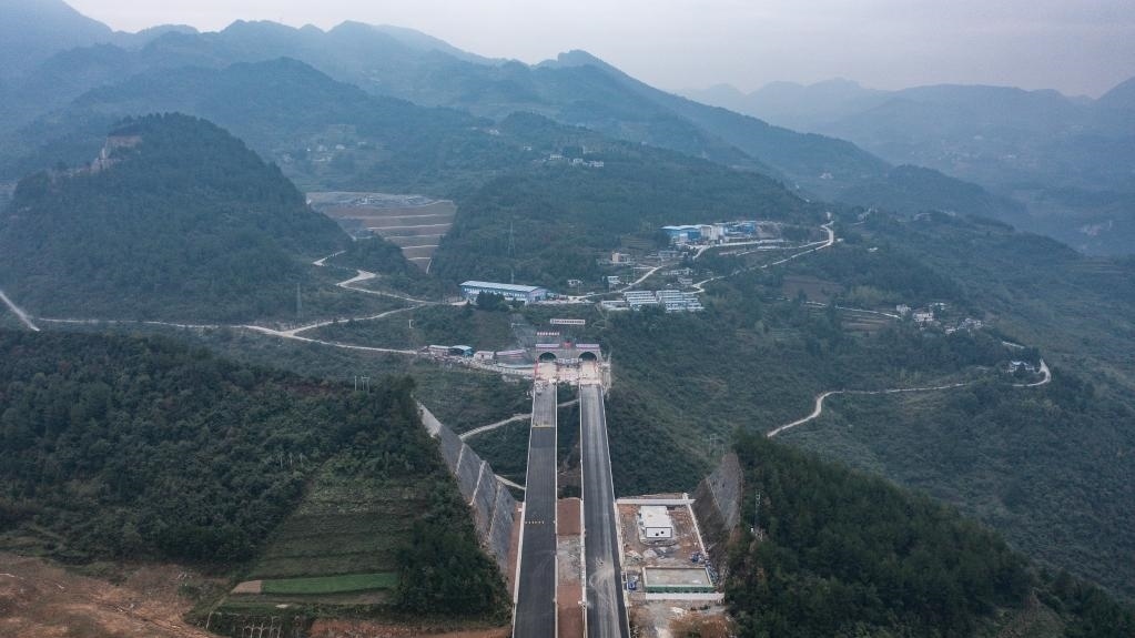 這是2022年10月13日拍攝的蘭州至??趪腋咚俟分貞c至遵義段(貴州境)擴(kuò)容工程項目桐梓隧道。當(dāng)日,桐梓隧道右幅順利貫通。新華社記者 陶亮 攝