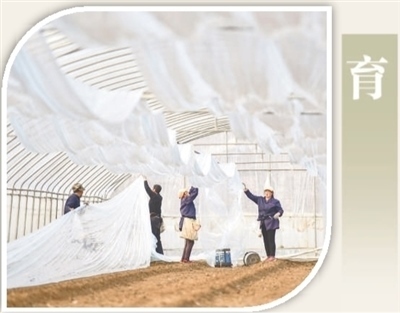 山東省青州市益都街道北河?xùn)|村一處蔬菜育種試驗基地內(nèi),工人在準(zhǔn)備蔬菜繁殖所需的保溫膜。王繼林?jǐn)z(影像中國)