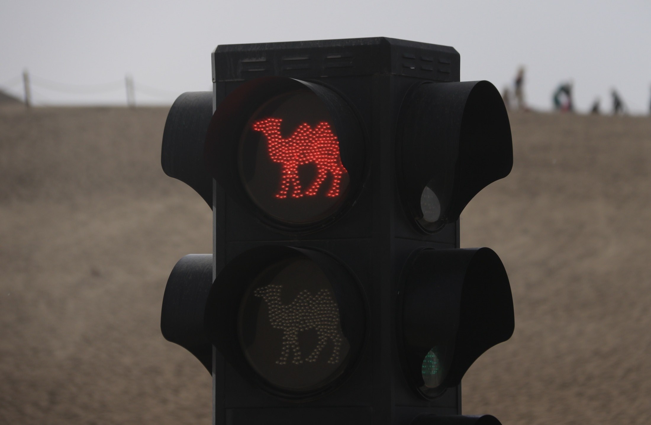 甘肅酒泉:月牙泉景區(qū)內設置駱駝紅綠燈