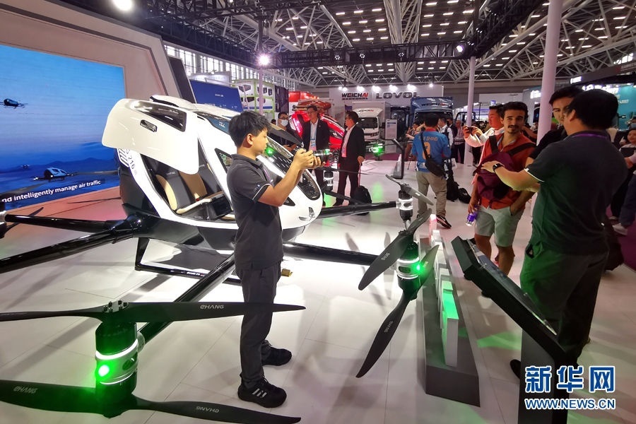 這是廣交會上展示的億航載人和運輸無人機(4月15日攝)。新華網(wǎng) 盧鑒 攝