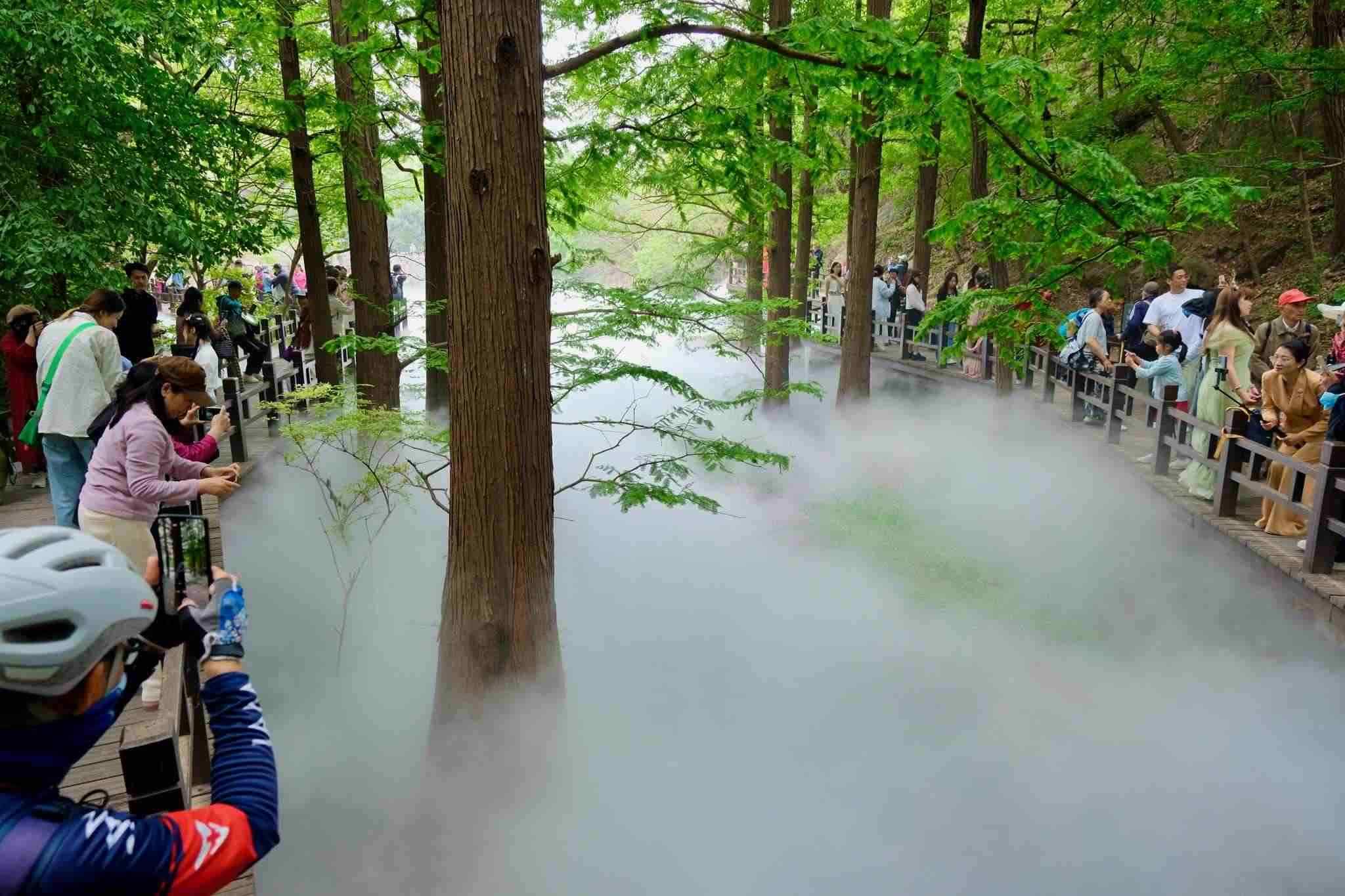 2023年5月6日,北京,立夏時節(jié),萬物繁茂,國家植物園櫻桃溝景區(qū)“云霧繚繞”宛若“仙境”。視覺中國