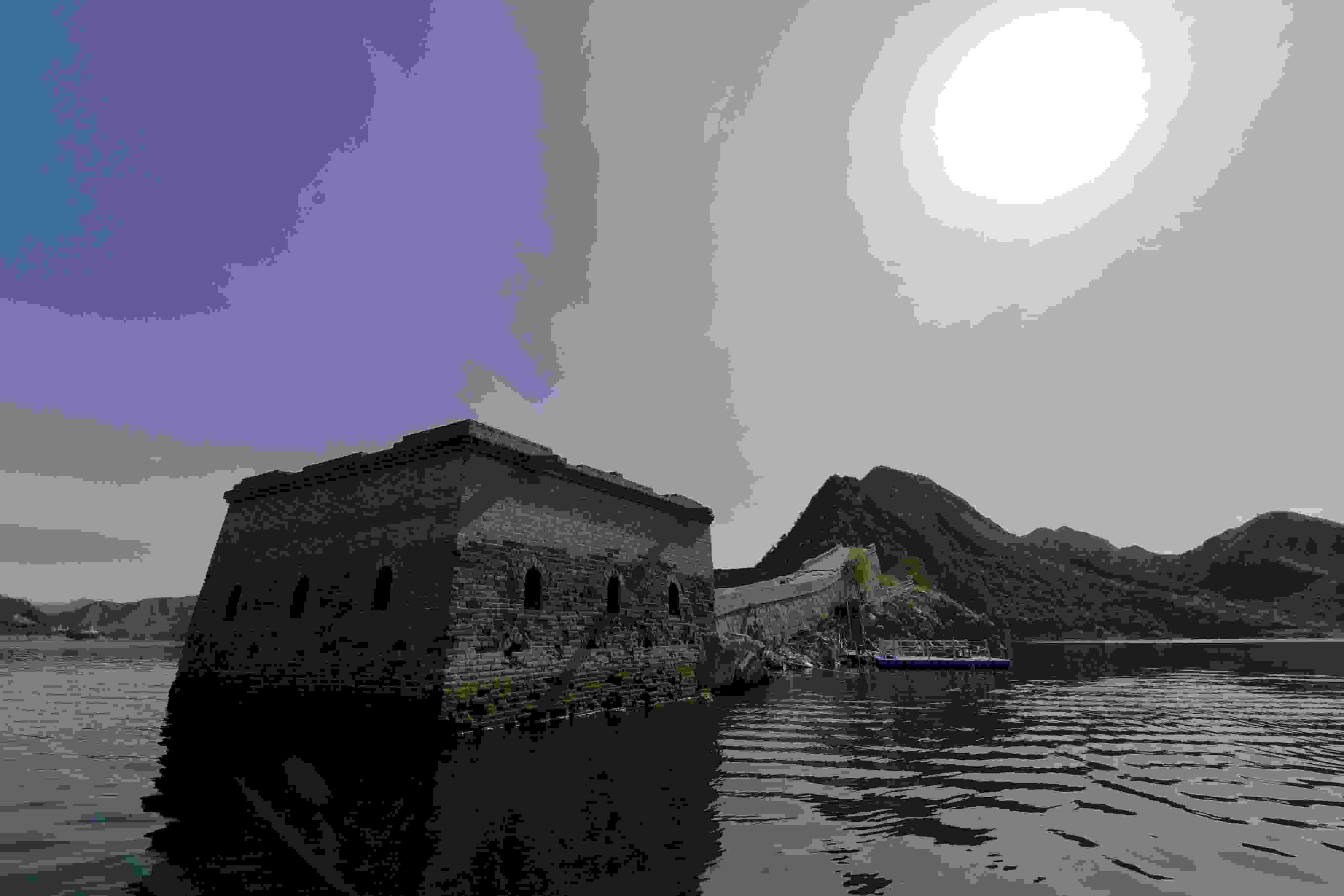 2023年5月8日,河北承德,寬城滿族自治縣境內(nèi)潘家口水庫(kù)的“水下長(zhǎng)城”。這段“水下長(zhǎng)城”是明長(zhǎng)城的遺址,20世紀(jì)70年代因建設(shè)水利樞紐工程,部分長(zhǎng)城隱沒(méi)水下,從而形成“水下長(zhǎng)城”景觀。 視覺(jué)中國(guó)