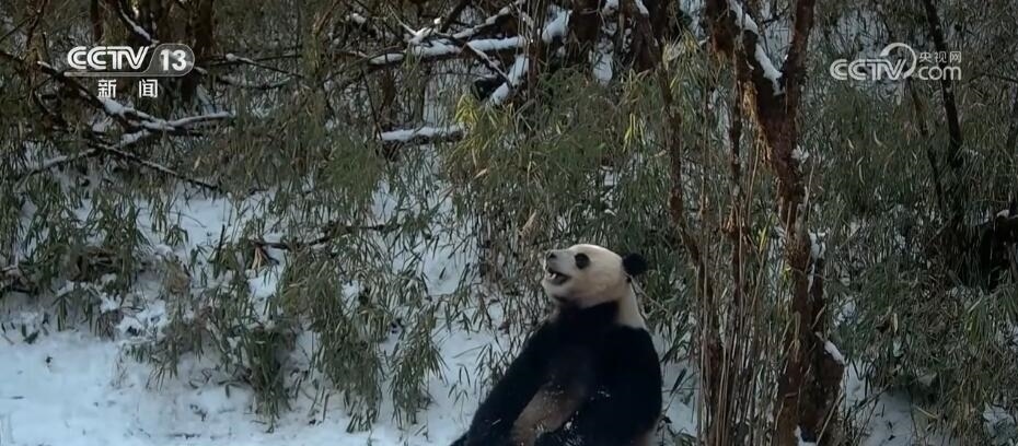 從畫面中可以看到,一只野生大熊貓來到一片結了薄冰的水洼,用前爪破冰后,順著裂口“開懷暢飲”,憨態(tài)可掬,惹人喜愛。