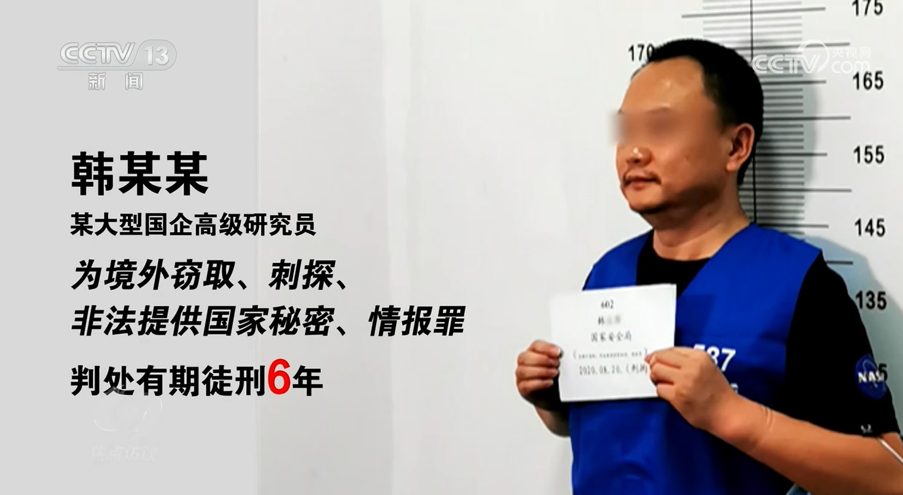 韓某某,我國某大型國企高級研究員,因為境外竊取、刺探、非法提供國家秘密、情報罪,被判處有期徒刑6年。