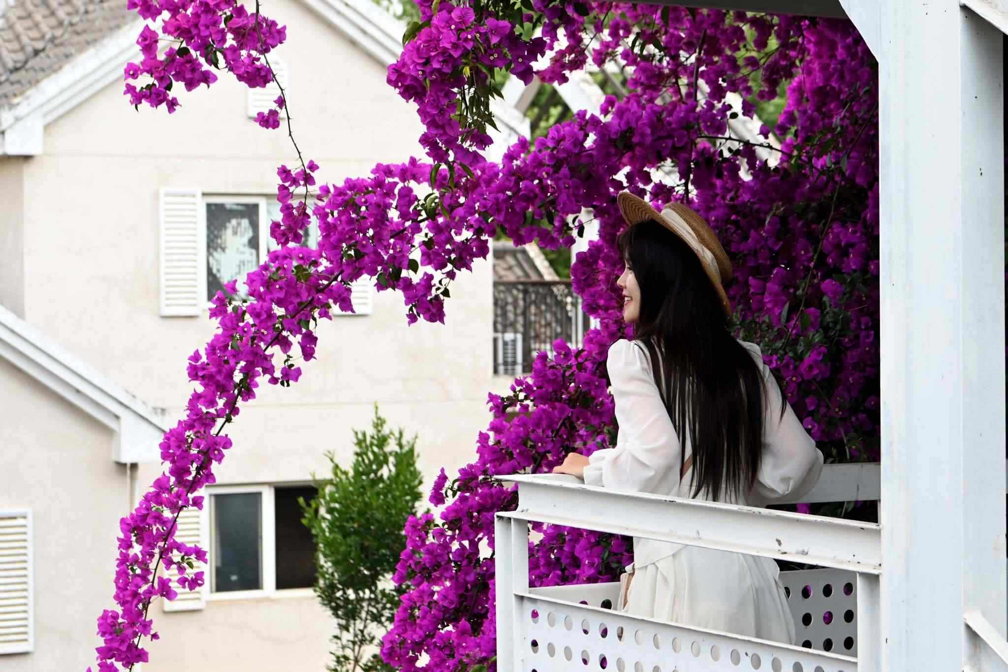 近日,云南省昆明市街頭的三角梅迎來(lái)盛花期,盛開(kāi)的花朵如瀑布般傾瀉而下,吸引許多市民前來(lái)觀賞、拍照。 視覺(jué)中國(guó)