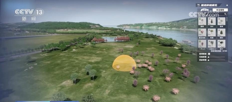 在現(xiàn)場(chǎng),工作人員給記者演示了“生態(tài)大腦”的一種特殊的推演功能。在“數(shù)字廣陽島”上的同一片區(qū)域,先后采用兩種不同的植被種植方案,過了十幾秒,“生態(tài)大腦”就自動(dòng)推演出了10年后這片區(qū)域在不同方案下的植被樣貌。