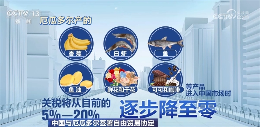 中方實(shí)施零關(guān)稅的產(chǎn)品將全面覆蓋厄瓜多爾的主要出口產(chǎn)品。協(xié)定生效后,厄瓜多爾產(chǎn)的香蕉、白蝦、魚、魚油、鮮花和干花、可可和咖啡等產(chǎn)品進(jìn)入中國市場(chǎng)時(shí),關(guān)稅將從目前的5%—20%逐步降至零。