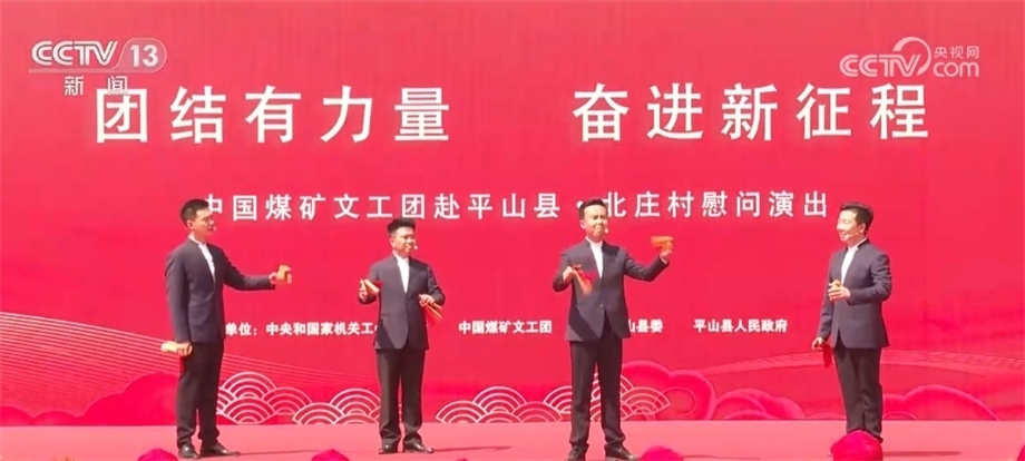 5月11日至12日,中國(guó)煤礦文工團(tuán)走進(jìn)河北省平山縣西柏坡鎮(zhèn)北莊村,開展以“團(tuán)結(jié)有力量 奮進(jìn)新征程”為主題的慰問(wèn)演出。伴隨著喜慶歡快的樂(lè)曲,演出在舞蹈《歡騰秧歌》中拉開帷幕,老、中、青三代藝術(shù)家們登臺(tái)獻(xiàn)藝。演出除主會(huì)場(chǎng)外,還設(shè)立了分會(huì)場(chǎng),精彩的節(jié)目受到了觀眾的歡迎。
