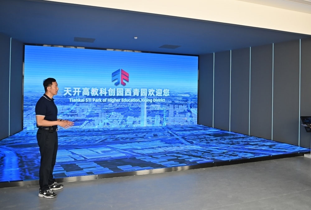 工作人員在天開(kāi)高教科創(chuàng)園西青園介紹情況(5月11日),新華社記者李然攝
