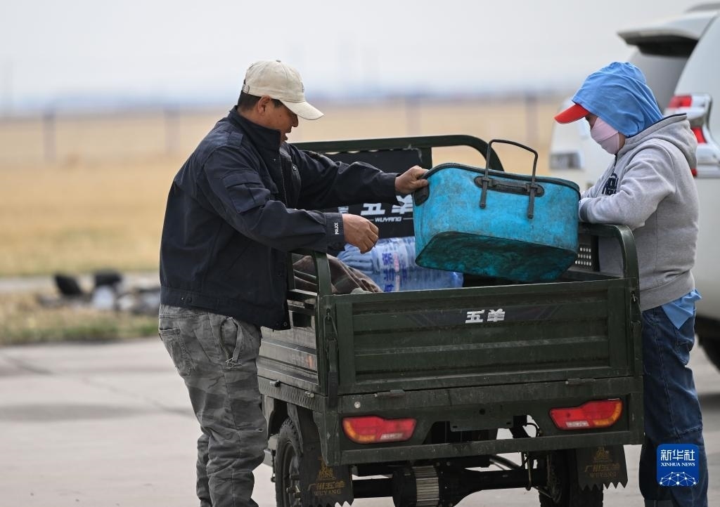 5月11日,徐沃德樂(lè)胡(左)和同事一起為救助候鳥準(zhǔn)備食物。