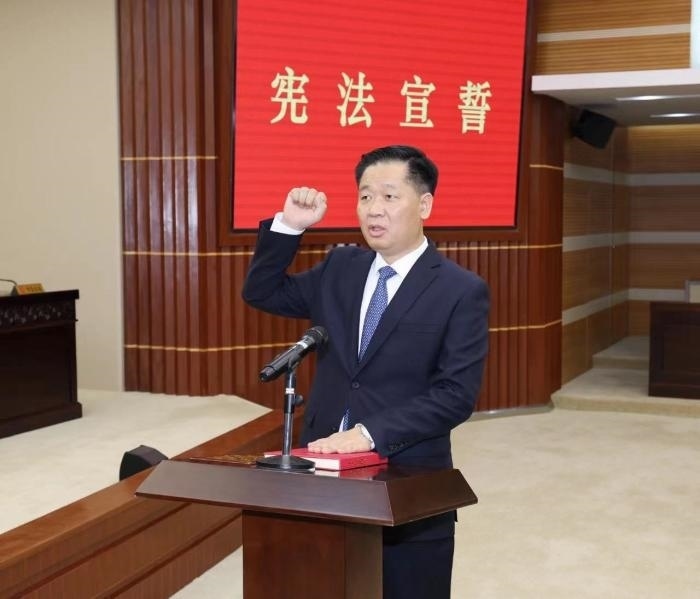 潘國(guó)強(qiáng)進(jìn)行憲法宣誓 圖片來源:微信公眾號(hào)“揚(yáng)州發(fā)布”