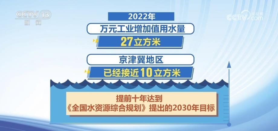 我國(guó)從“十二五”開(kāi)始施行“最嚴(yán)格的水資源管理制度”。2021年,全國(guó)萬(wàn)元工業(yè)增加值用水量較2012年下降55%。2022年,萬(wàn)元工業(yè)增加值用水量27立方米,京津冀地區(qū)已經(jīng)接近10立方米,提前十年達(dá)到《全國(guó)水資源綜合規(guī)劃》提出的2030年目標(biāo)。