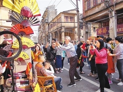 2月19日,廣東省江門市蓬江區(qū)新市路一帶老街,人流如織。