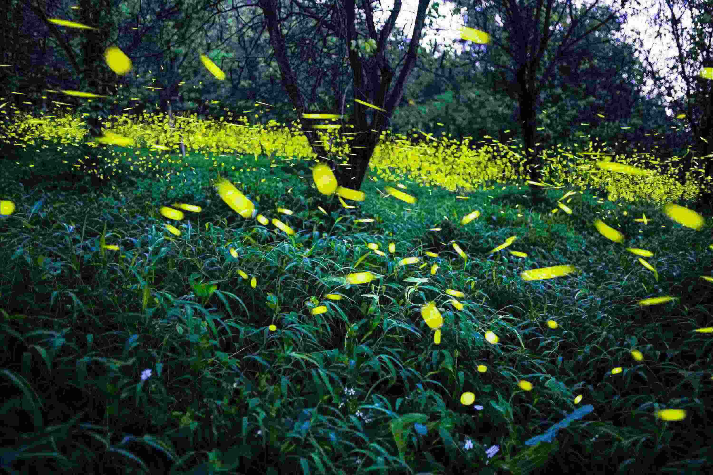 2023年5月15日,廣東佛山,南海區(qū)西樵山景區(qū),螢火蟲在林間飛舞。 視覺中國