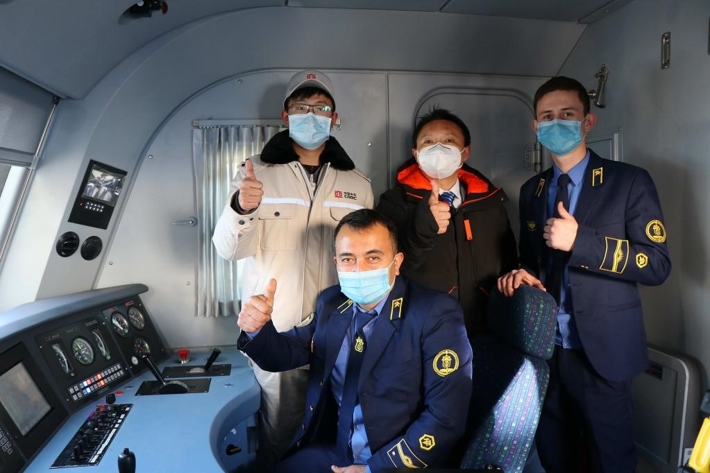 這是中國電力機(jī)車出口烏茲別克斯坦,中方技術(shù)人員和烏方駕駛?cè)藛T的合影。