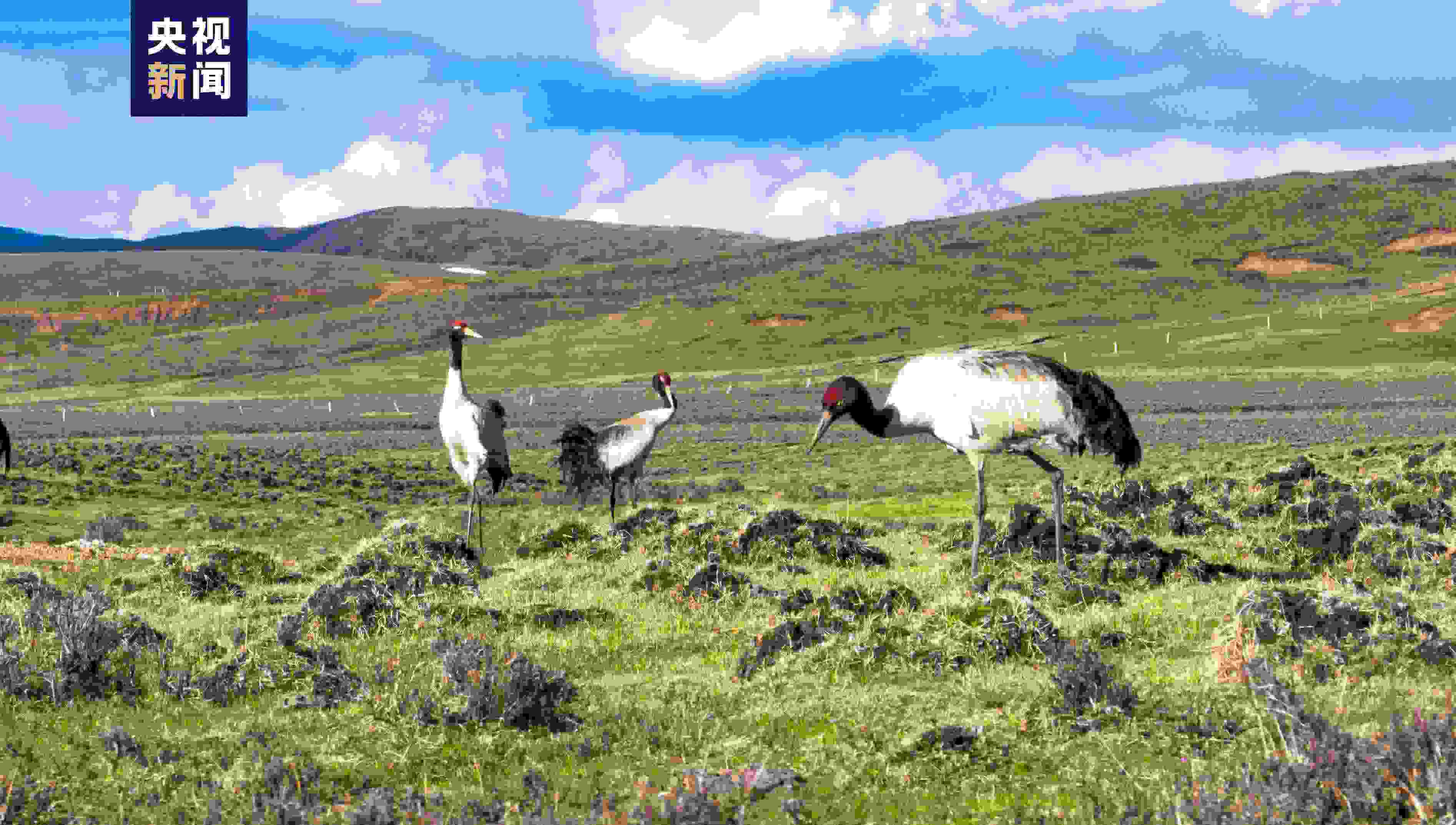 5月22日,四川松潘縣林草局工作人員在尕力臺(tái)濕地例行巡護(hù)時(shí),發(fā)現(xiàn)6只國(guó)家一級(jí)重點(diǎn)保護(hù)野生動(dòng)物黑頸鶴,這是松潘縣內(nèi)首次發(fā)現(xiàn)黑頸鶴“落戶”。據(jù)了解,黑頸鶴需要潔凈而開(kāi)闊的濕地環(huán)境作為棲息地,是對(duì)濕地環(huán)境變化極為敏感的指示生物。