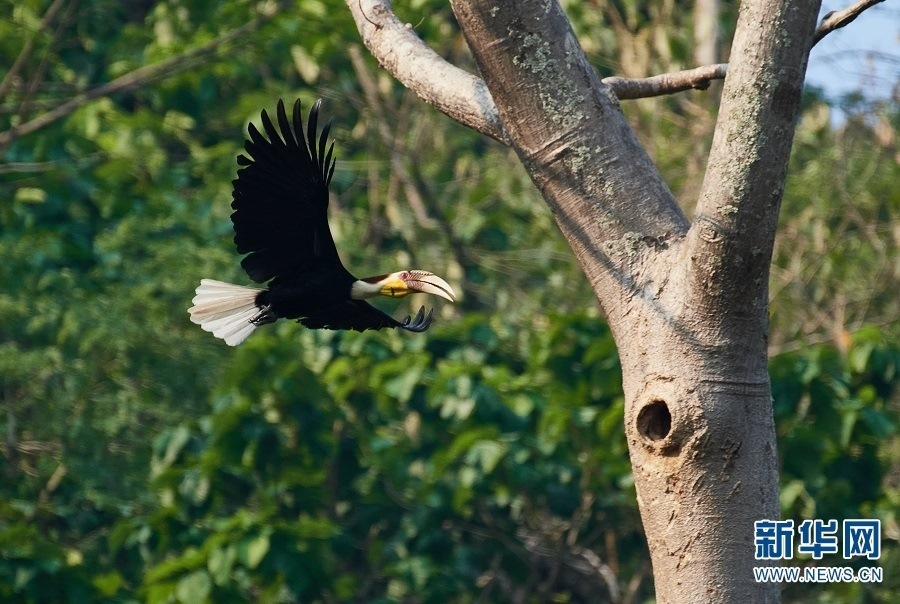 花冠皺盔犀鳥(5月1日攝)。新華網發(fā)(郭康 攝)