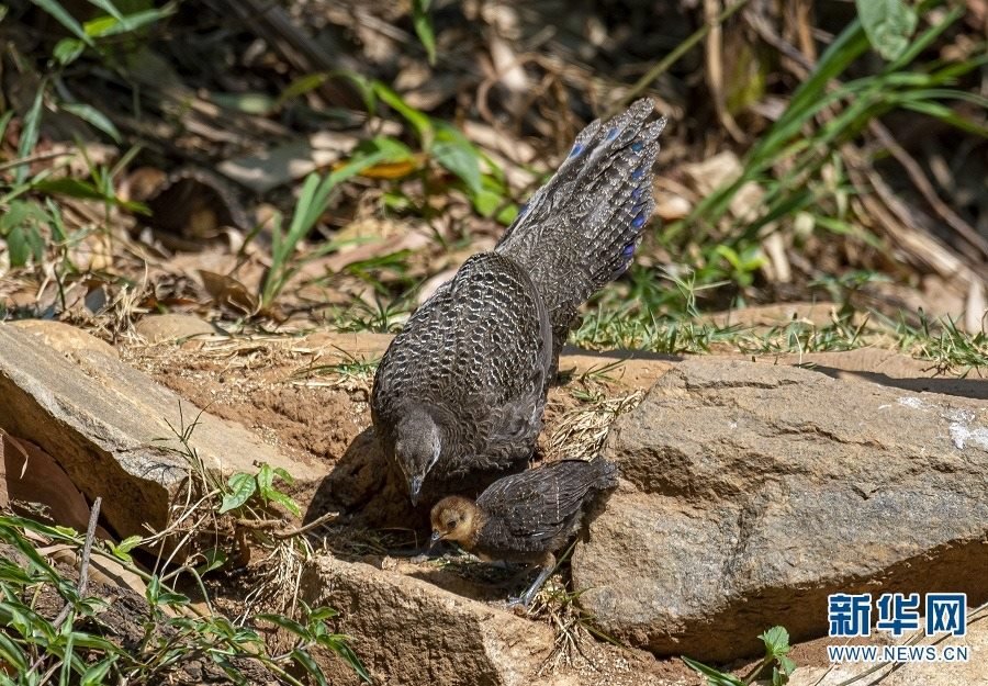 灰孔雀雉(5月1日攝)。新華網發(fā)(郭康 攝)