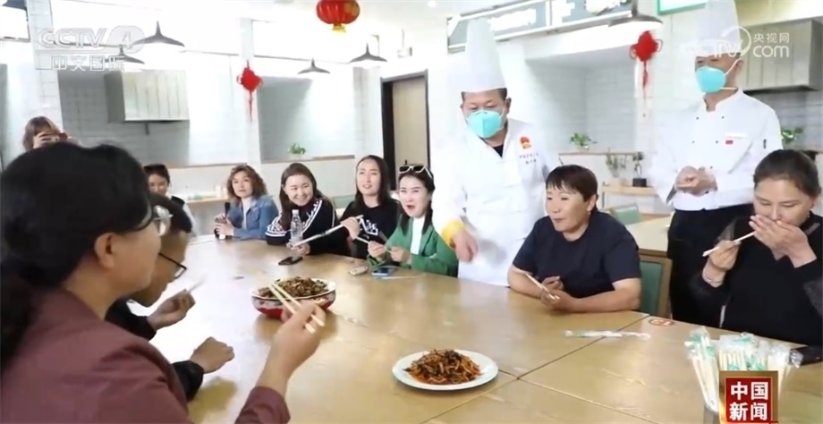 新疆塔城額敏縣居民 唐東升:主要是學(xué)炒菜技術(shù)、切配,那些師傅人很好,講了很多經(jīng)驗。上菜老是上錯,我也沒管過,我也不會,后面經(jīng)過培訓(xùn)就好很多了。