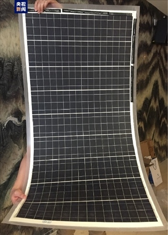 在中科院上海微系統(tǒng)所,科研人員向記者展示了他們研制的高柔韌性單晶硅太陽電池,太陽電池在科研人員手中就像我們平??吹降囊粡埣埧梢源蠼嵌葟澢?。