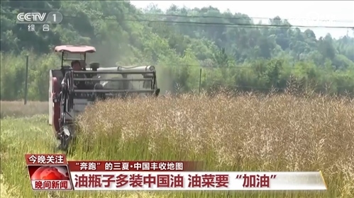 作為國內(nèi)主要食用油源,油菜籽的加工技術(shù)也在提升。鐮刀割菜、摔打脫籽的傳統(tǒng)收割方式,逐漸被智能機(jī)械化替代。一臺收割機(jī)能先后完成脫粒、粉碎油菜果殼和秸稈以及噴撒還田的全流程,還大大降低了菜籽丟損率。傳統(tǒng)人工收割一天只能收一畝,機(jī)械收割一天能收60到70畝,也就是說,一臺收割機(jī)相當(dāng)于至少60個(gè)勞動(dòng)力。不得不感嘆,農(nóng)業(yè)現(xiàn)代化,真香。今年夏收,油菜面積預(yù)計(jì)達(dá)到1億畝以上,增加1000萬畝左右。為了我們的“油瓶子”多裝中國油,中國油菜要“加油”。