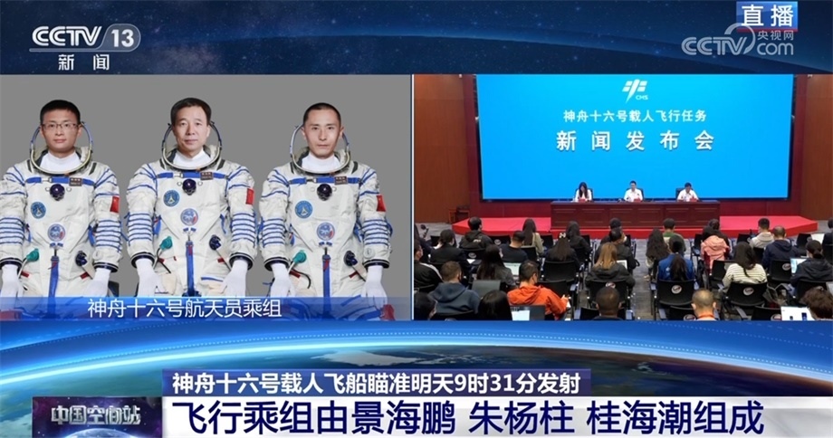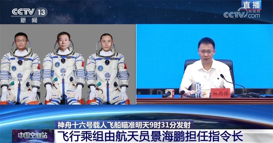 中國載人航天工程辦公室副主任、工程新聞發(fā)言人 林西強(qiáng):受任務(wù)總指揮部委托,由我向大家介紹神舟十六號載人飛行任務(wù)有關(guān)情況。經(jīng)總指揮部研究決定,瞄準(zhǔn)北京時間5月30日9時31分發(fā)射神舟十六號載人飛船,飛行乘組由航天員景海鵬、朱楊柱和桂海潮組成,景海鵬擔(dān)任指令長。航天員景海鵬先后參加過神舟七號、九號、十一號載人飛行任務(wù),朱楊柱和桂海潮都是首次飛行。目前,執(zhí)行此次發(fā)射任務(wù)的長征二號F遙十六火箭即將開始加注推進(jìn)劑。