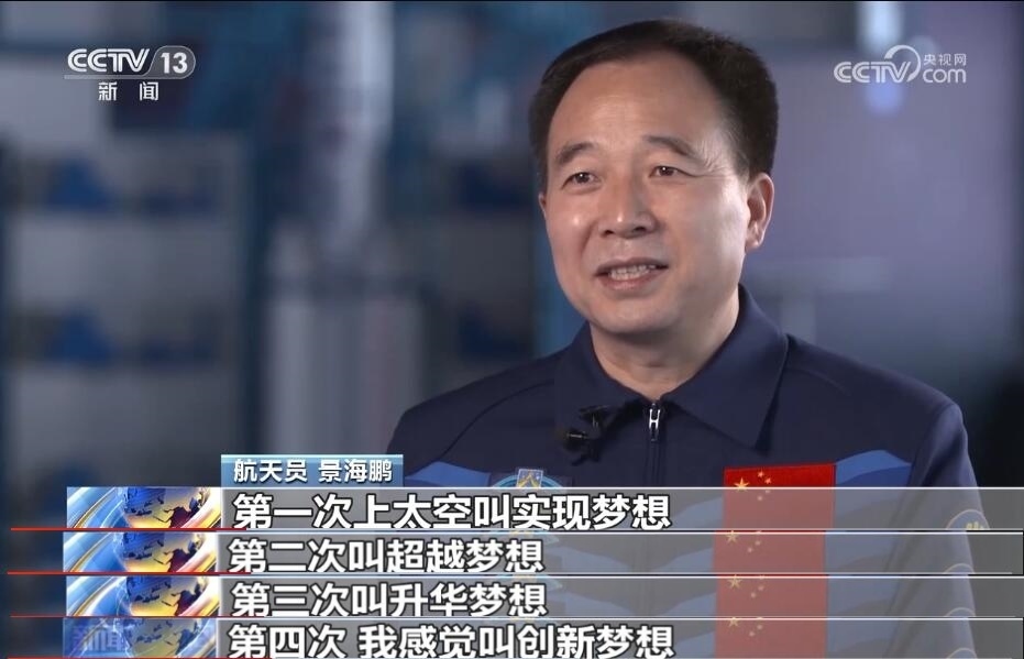 航天員 景海鵬:第一次上太空叫實(shí)現(xiàn)夢想,第二次叫超越夢想,第三次叫升華夢想,第四次,我感覺叫創(chuàng)新夢想。很感恩新時(shí)代,剛才說如果沒有這個(gè)偉大新時(shí)代,就不會有載人航天的連戰(zhàn)連捷;如果沒有這個(gè)偉大新時(shí)代,還夢想飛兩次飛三次飛四次,你想都不敢想,夢都夢不到。