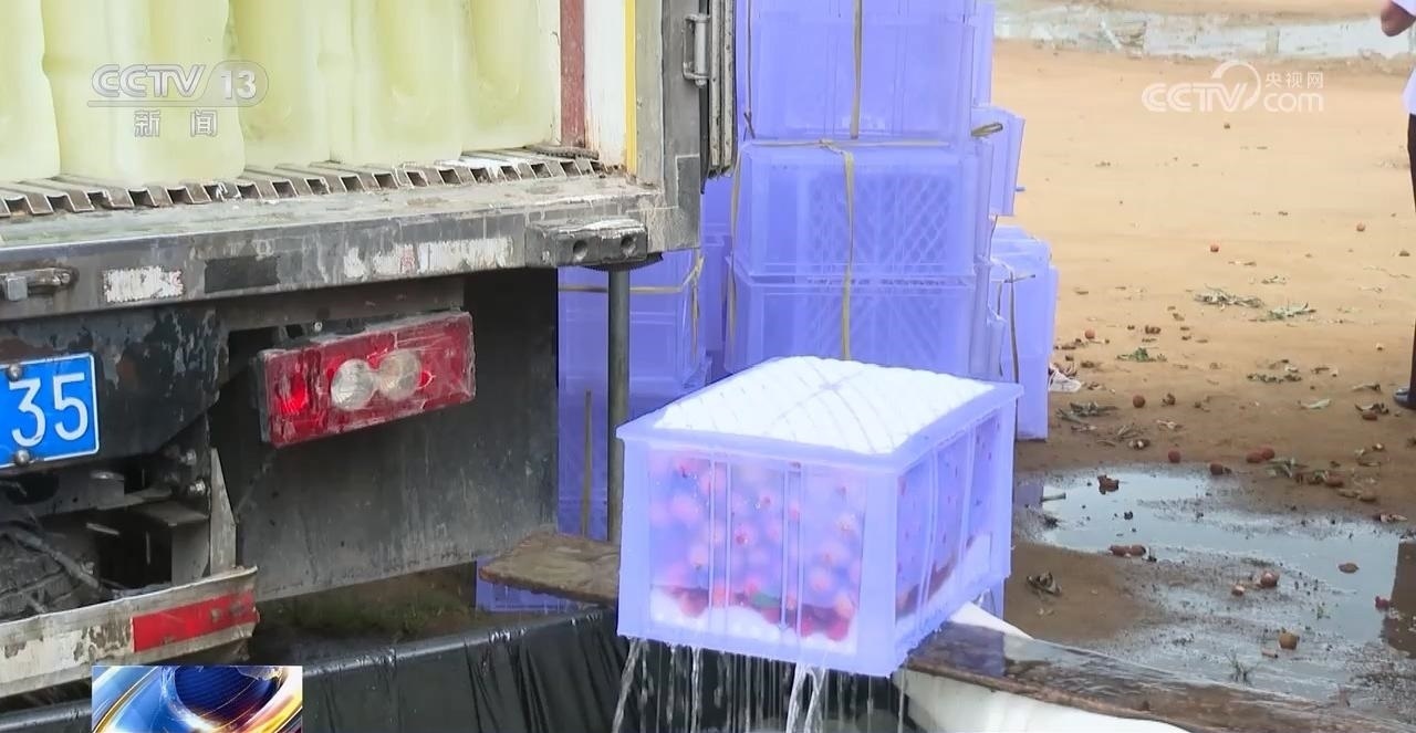 這邊采購商前腳剛走,梁康連就來到荔枝分揀打包中心。現(xiàn)在這里剛采摘下來的荔枝,分選打包后,要放到冰水里浸泡一個小時以上,再裝上冷鏈車物流運輸保證荔枝的新鮮度。