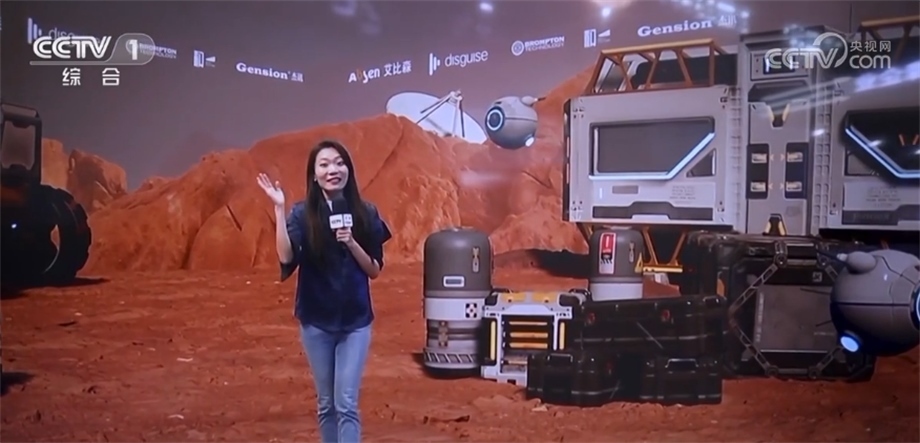 總臺(tái)記者 馬宇涵:你現(xiàn)在看到的我正在火星上漫游,和未來(lái)的機(jī)器人打個(gè)招呼。但現(xiàn)實(shí)里的我其實(shí)正站在一個(gè)虛擬現(xiàn)實(shí)的影棚中。沒錯(cuò),就是通過(guò)這樣新的拍攝手法,無(wú)論過(guò)去還是未來(lái),你想去到哪里,我們就能去到哪里。