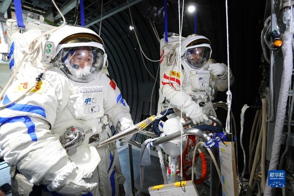神舟十六號航天員乘組進行航天服操作訓(xùn)練(2022年10月19日攝)。新華社發(fā)(徐部 攝)