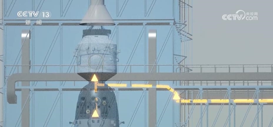總臺(tái)央視記者 勞春燕:這個(gè)發(fā)射塔架就好像是一個(gè)100多米高的“鋼鐵巨人”。它有一個(gè)學(xué)名叫“臍帶塔”,為什么叫這個(gè)名字?因?yàn)樗芾镉懈鞣N線纜和管路,就像嬰兒的臍帶一樣,可以為火箭和飛船輸送能量與養(yǎng)分。另外,塔架還裝了空調(diào)和保溫層,可以為船箭創(chuàng)造一個(gè)合適的環(huán)境。有了它的全方位保護(hù),火箭適應(yīng)環(huán)境的能力大大提高,即使碰上零下20℃的極寒天氣依然可以正常發(fā)射。