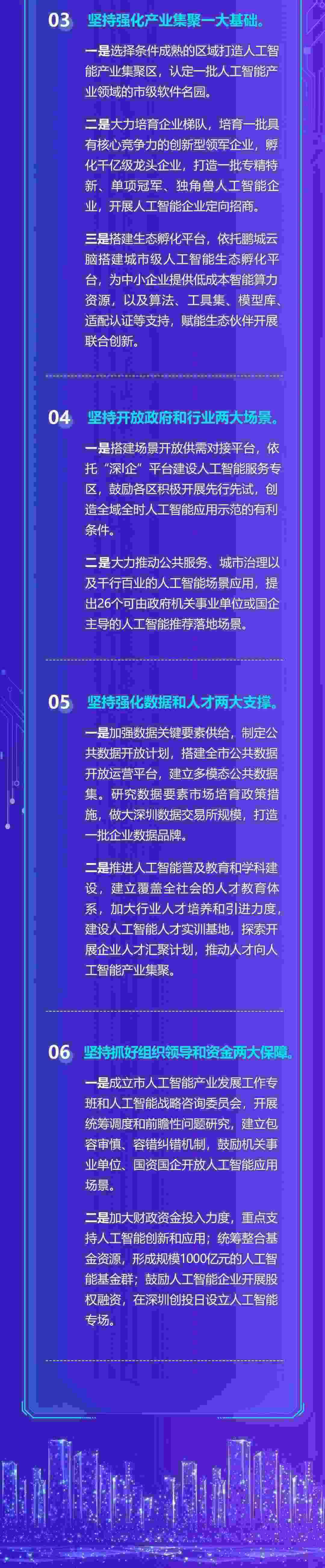 ?。ㄊ┘訌?qiáng)資金保障。加大財(cái)政資金投入力度,重點(diǎn)支持人工智能創(chuàng)新和應(yīng)用。發(fā)揮政府投資引導(dǎo)基金作用,統(tǒng)籌整合基金資源,形成規(guī)模1000億元的人工智能基金群。鼓勵人工智能企業(yè)在境內(nèi)外多層次資本市場開展股權(quán)融資,支持風(fēng)投、創(chuàng)投機(jī)構(gòu)加強(qiáng)對人工智能初創(chuàng)企業(yè)的投資并購,在每月8日舉行的深圳創(chuàng)投日活動中設(shè)立人工智能專場。(責(zé)任單位:市財(cái)政局、市發(fā)展改革委、市地方金融監(jiān)管局、市中小企業(yè)服務(wù)局等)